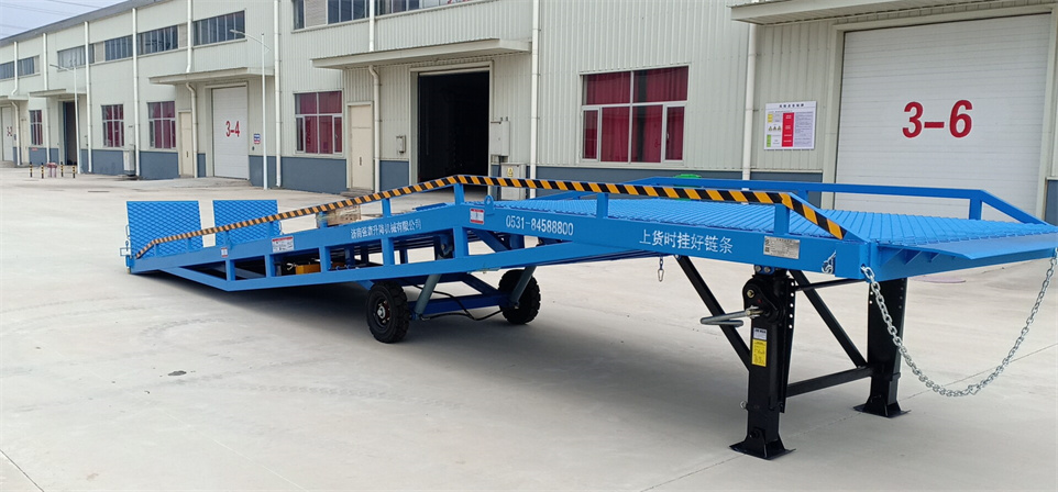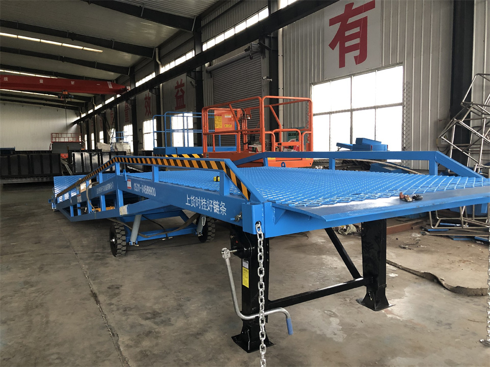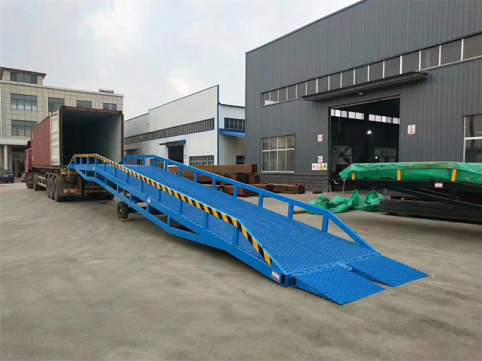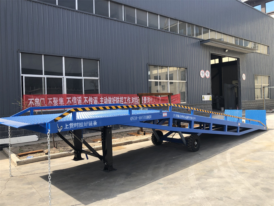 移动式登车桥,该设备一端与货台等高,另一端搭在车厢后缘上,并能(néng)根据不同的车型及装车过程中车厢的变化,自动调整高度。该产品可根据用户的不同需(xū)要,在外形尺(chǐ)寸、承受载荷等方面作特殊设计。 登车桥可广泛地应用于邮(yóu)政、粮食、车(chē)站码头(tóu)。