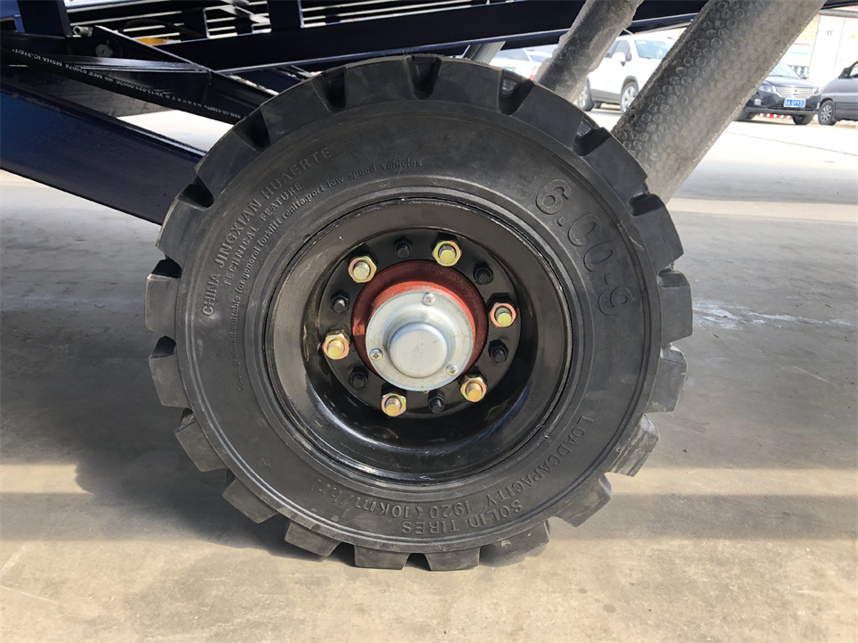 根据不同载荷量选择不同型号的轮(lún)胎:500MM-8、600MM-9