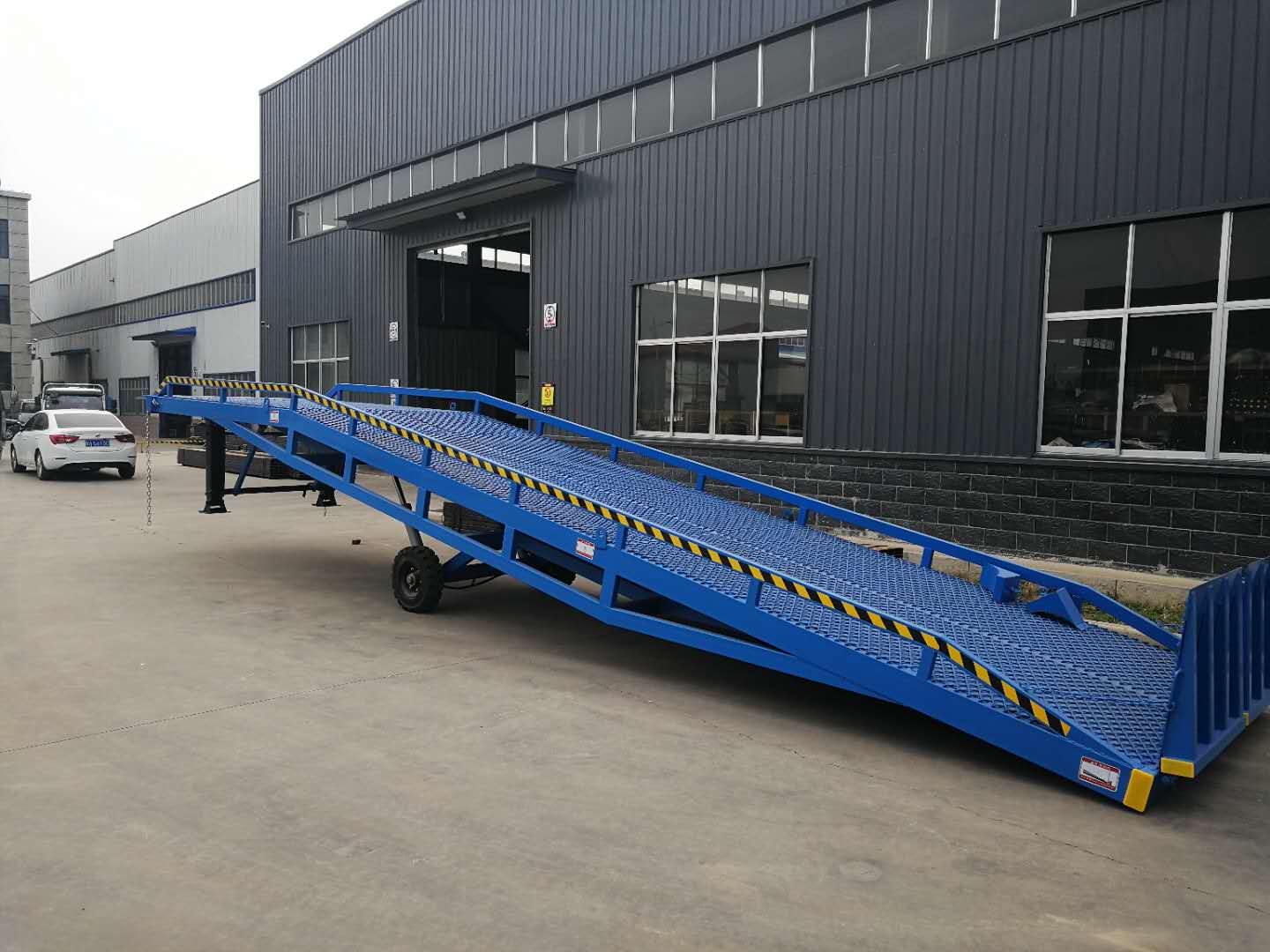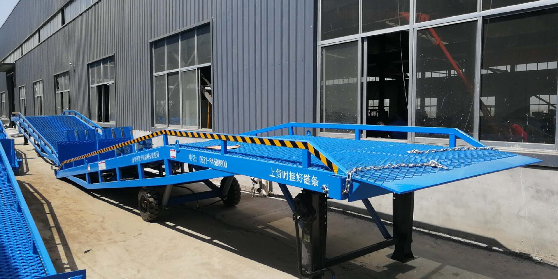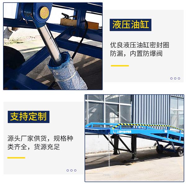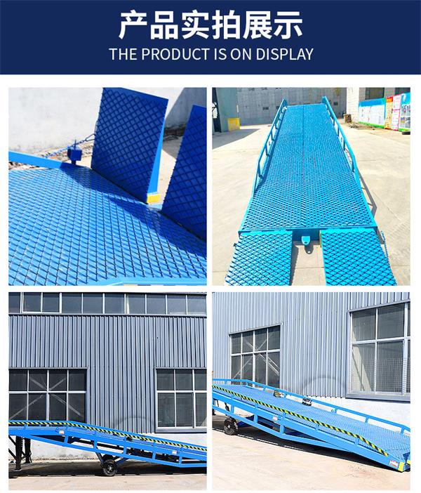 我公司專(zhuān)業生(shēng)產移(yí)動式液壓登車橋(集裝箱裝卸貨平台)廣泛用於無裝卸(xiè)設備的貨台及流動場所,是與叉車配合使用的貨物輔助設備。借助該設備,叉車(chē)能直接駛入汽車車廂內部進行批量裝卸(xiè)作業。隻需單人就可操作,不需動力電源,即可實現貨物的安全快速裝(zhuāng)卸。既可使您減輕勞動強度,又能(néng)成倍提高裝(zhuāng)卸作業效率(lǜ),加快物料流通速度,獲取更大經濟(jì)效益。